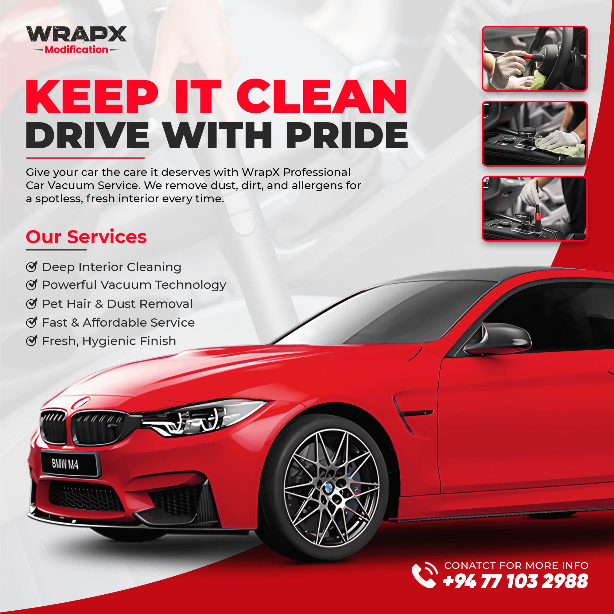 WrapX is a premier automotive service provider specializing in vehicle wraps, paint protection film (PPF), vacuum cleaning, car washing, and more. I recently joined the team in April 2025 as a Graphic Designer, contributing to the brand's visual identity, promotional materials, and creative campaigns. My role focuses on enhancing the brand's storytelling and visual appeal to effectively connect with its audience and showcase its exceptional services.